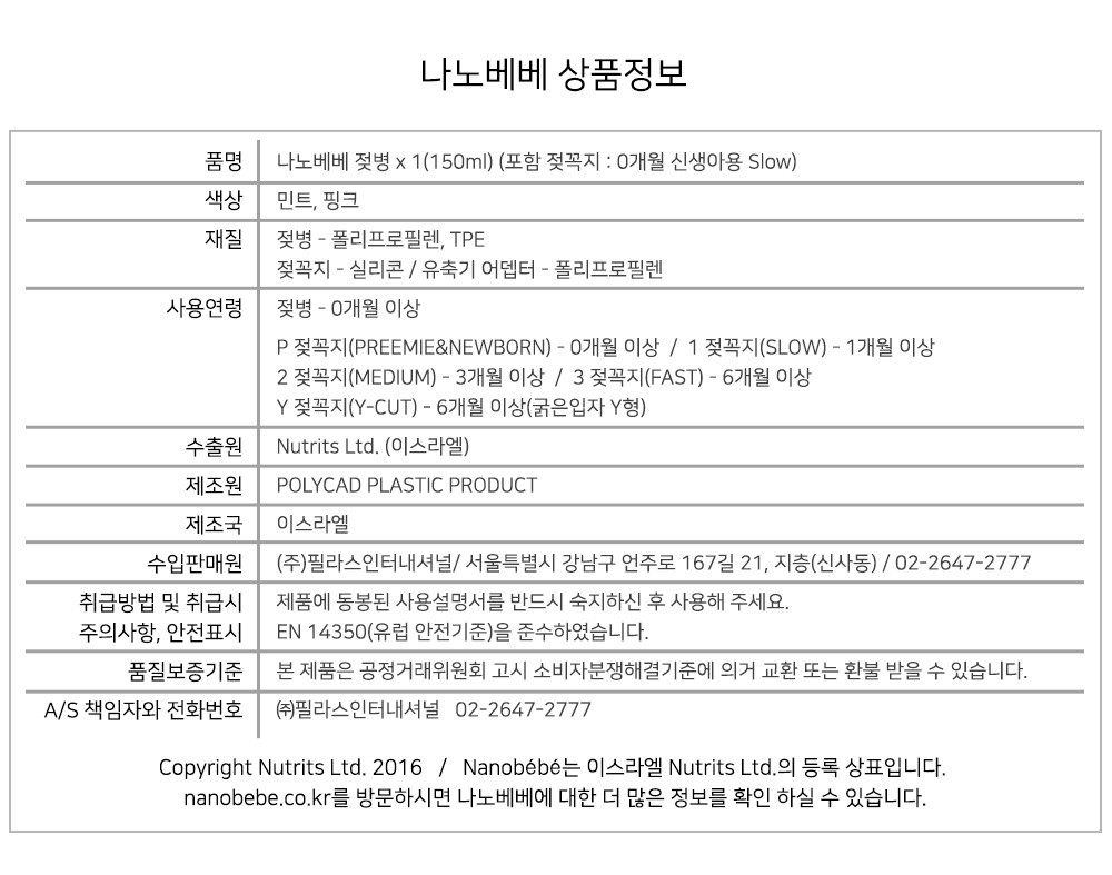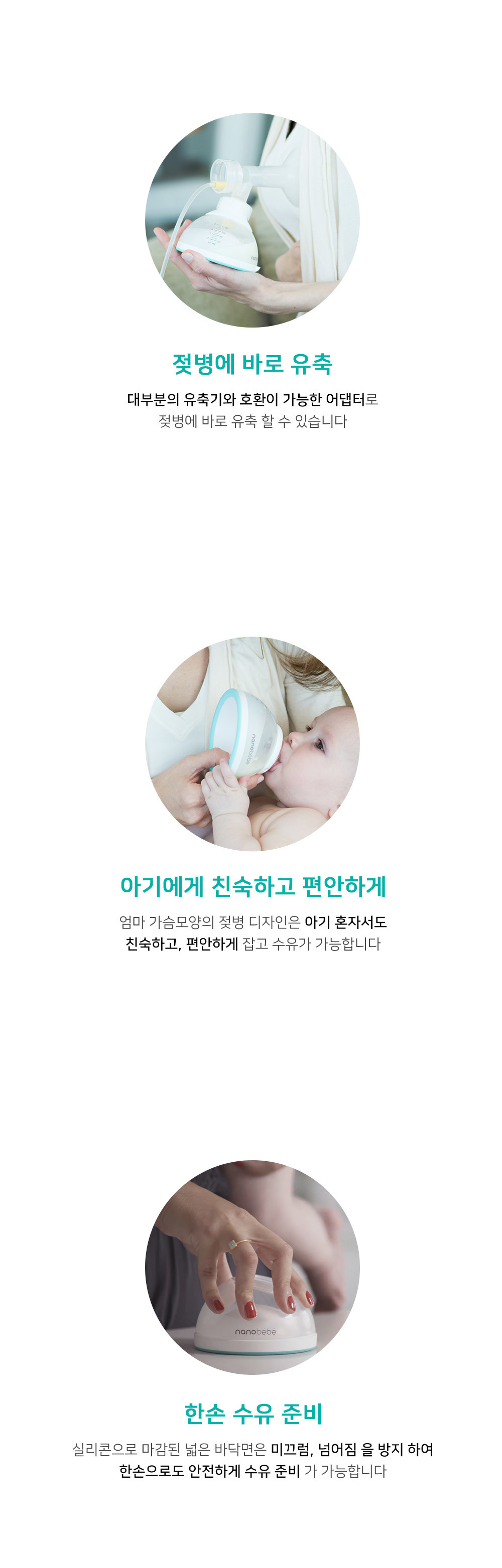 나노베베 1단계 뉴본젖병은 150ml 용량으로 신생아부터 사용할 수 있습니다. 또한 유축기 어댑터가 포함되어 있어 모유 수유에 최적화 된 제품입니다.