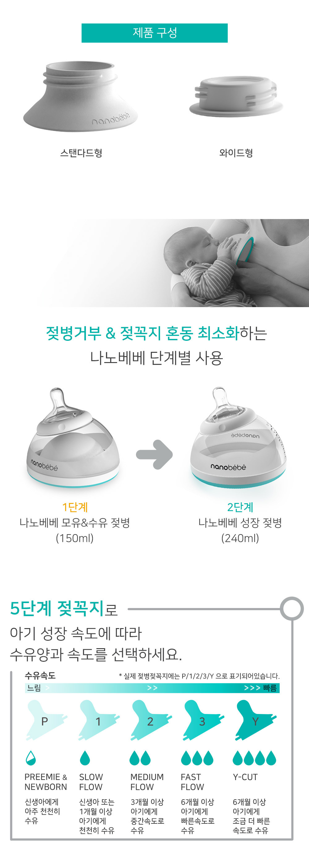 별도로 프리미, 슬로우, 미디엄, 패스트, Y-컷까지 총 5단계 젖꼭지를 구매, 사용하실 수 있습니다.